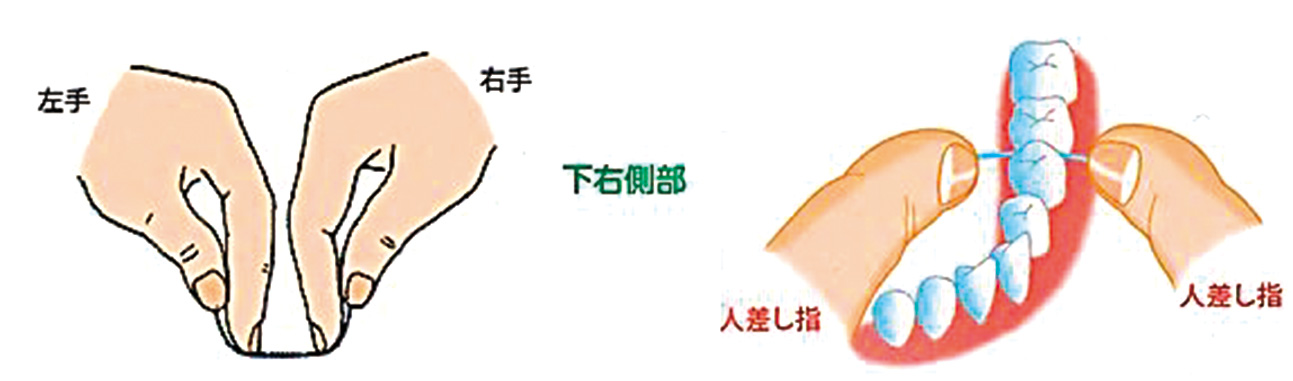 ※②の様に左右(頬⇆舌)にゆっくりスライドさせて挿入しましょう。※指に巻くタイプもホルダータイプも挿入の仕方は一緒です。